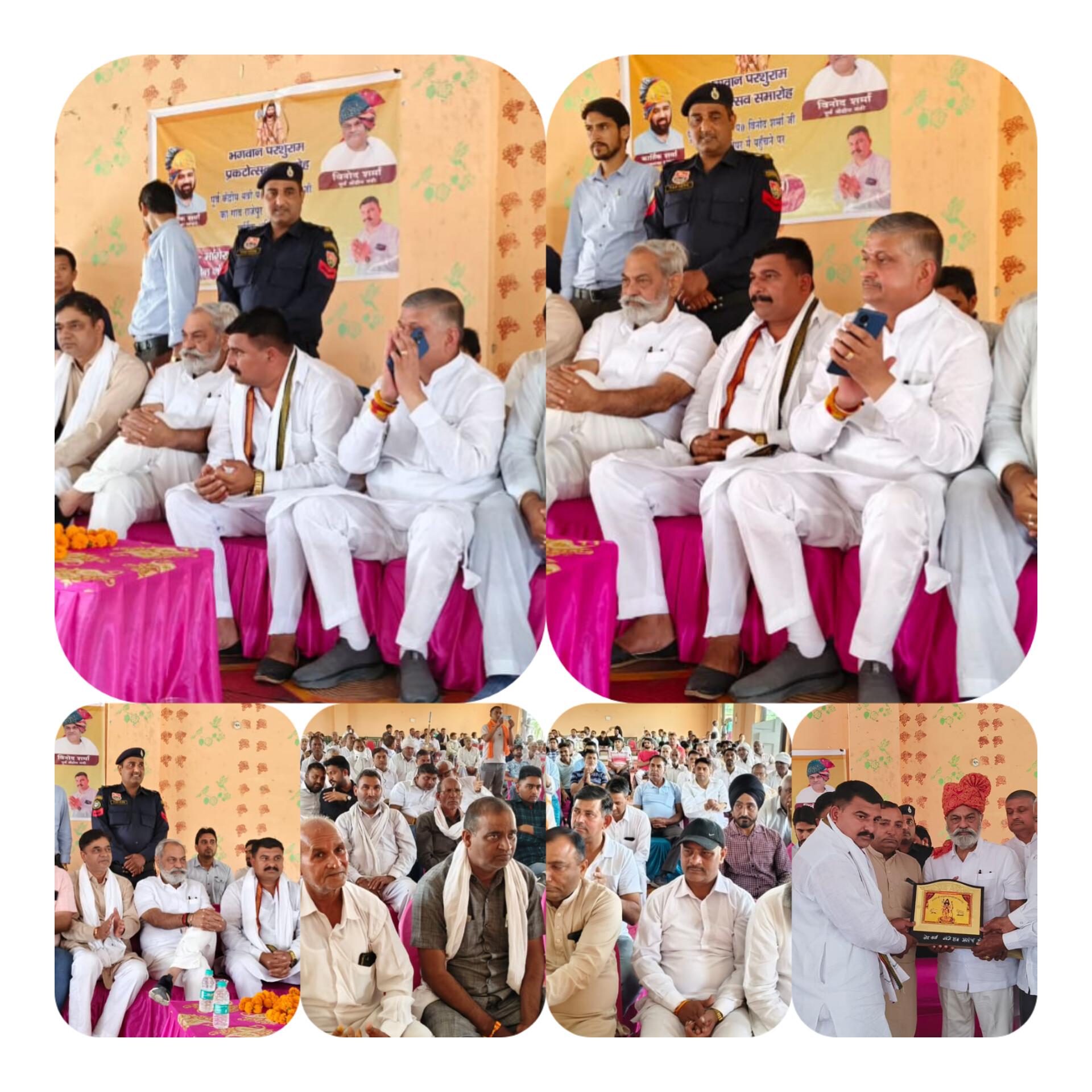 पूर्व केन्द्रीय मंत्री विनोद शर्मा ने आज इन्द्री हल्के के कमालपुर रोड़ान, राजेपूर, खूखनी, गढ़ी जाटान तथा पूजम, कुडक़, जरीफा व बालू सहित कई गांवों का दौरा कर पांच मई को करनाल में मनाई जाने वाली भगवान परशुराम जंयती में पहुंचनें का न्यौता दिया। इस मौके पर ब्राहण समाज के कई नेता उनके साथ मौजूद रहे। इसी क्रम में गांव राजेपुर में पहुंचनें पर पूर्व केन्द्रीय मंत्री विनोद शर्मा का गांव के सरपंच मांगे राम शर्मा ने अपने साथियों के साथ जोरदार स्वागत किया। उन्होंने पूर्व मंत्री विनोद शर्मा को पगड़ी व शाल ओढ़ाकर तथा स्मृति चिंह देकर सम्मानित किया गया। इस मौके पर मंच का संचालन मास्टर सुखदेव शर्मा ने किया। उपस्थित गांववासियों को संबोधित करते हुए पूर्व केन्द्रीय मंत्री विनोद शर्मा ने कहा कि इस बार भगवान परशुराम जन्मोत्सव करनाल की पुरानी सब्जी मंड़ी में पांच मई को मनाया जा रहा है जिसमें पूरे प्रदेश के लोग शामिल होगें। यह एक सामाजिक कार्यक्रम है जिसका न्यौता देने के लिए मैं आपके बीच आया हूं। उन्होंने कहा कि हमें भगवान परशुराम जी एवं अन्य महापुरूषों के बताए हुए मार्ग पर चलकर अपने जीवन को सफल बनाना चाहिए। हम सब का कत्र्तव्य बनता है कि हम सब आपस में मिलजुल एक दूसरे का दु:ख दर्द बांटकर अपना जीवन जिए ओर एक दूसरे का साथ दें तभी समाज तरक्की कर सकेगा।