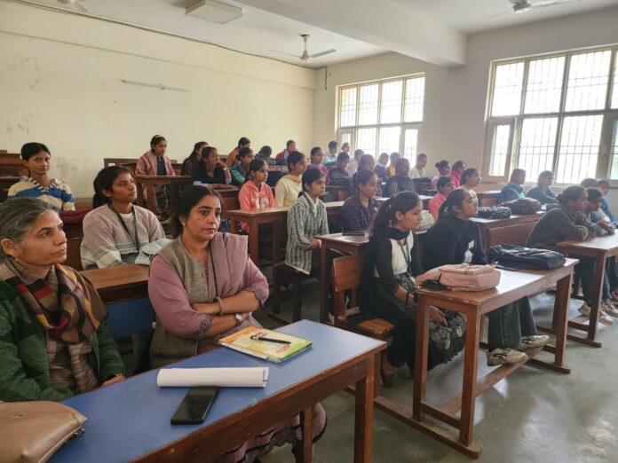 इंद्री विजय कांबोज।। शहीद उधम सिंह राजकीय महाविद्यालय, मटक माजरी, इंद्री (करनाल) में महिला प्रकोष्ठ द्वारा “फेमिनिस्ट सक्रियता एवं जागरूकता पर सोशल मीडिया का प्रभाव” तथा “शिक्षा का आर्थिक स्वतंत्रता एवं निर्णय-निर्धारण पर प्रभाव” विषयों पर जागरूकता कार्यक्रम का सफलतापूर्वक आयोजन किया गया। कार्यक्रम की शुरुआत प्राचार्य श्री महेंद्र सिंह बागी के प्रेरक संबोधन से हुई, जिसमें उन्होंने सोशल मीडिया द्वारा उत्पन्न नए अवसरों, युवा पीढ़ी की सक्रिय भागीदारी और महिलाएं कैसे डिजिटल मंचों पर अपनी आवाज को प्रभावी रूप से उठा सकती हैं, इस पर विशेष जोर दिया। उन्होंने यह भी कहा कि शिक्षा महिलाओं को आत्मविश्वास, नेतृत्व क्षमता और समान अवसरों के लिए तैयार करती है, जिससे वे आर्थिक रूप से स्वावलंबी बनकर सशक्त निर्णय ले पाती हैं।