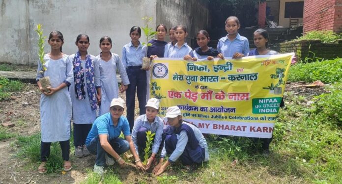 इन्द्री विजय काम्बोज || नेशनल इंटीग्रेटेड फोरम ऑफ आर्टिस्ट्स एंड एक्टिविस्ट (निफा) संस्था और माई भारत करनाल की जिला युवा अधिकारी सुरमयी शर्मा के निर्देशानुसार निफा इंद्री की महिला विंग अध्यक्ष, राज्य युवा अवार्डी नीरू देवी की अध्यक्षता में हर घर तिरंगा अभियान के तहत रैली और एक पेड़ मां के नाम कार्यक्रम का आयोजन राजकीय कन्या वरिष्ठ माध्यमिक विद्यालय इंद्री में किया गया। कार्यक्रम में मुख्य रूप से प्राध्यापक सुरेश कुमार, पर मोहन कुमार, राजेश कुमार, सुरेन्द्र कुमार व सामाजिक कार्यकर्ता जगदीप कटारिया ने शिरकत की। प्राध्यापक सुरेश कुमार और पर मोहन कुमार ने तिरंगे की महिमा, राष्ट्रीय एकता और स्वतंत्रता संग्राम में बलिदान देने वाले वीरों के योगदान पर प्रकाश डाला। निफा इंद्री महिला विंग अध्यक्ष, राज्य युवा अवार्डी नीरू देवी ने कहा कि तिरंगा यात्रा अभियान का उद्देश्य देश भक्ति की भावना को प्रोत्साहित करना और राष्ट्रीय ध्वज के प्रति सम्मान को बढ़ावा देने के साथ-साथ विभिन्न समुदायों और क्षेत्र के नागरिकों में राष्ट्रीय गौरव और एकता की भावना पैदा करना है। उन्होंने बताया कि पेड़ जीवनदायी होते हैं, और एक मां की तरह वे अगली पीढ़ी को पोषण, सुरक्षा और भविष्य प्रदान करते है। आओ हम सब मिलकर यह प्रण लें कि हम न सिर्फ एक-एक पेड़ लगाएंगे बल्कि उसका पोषण भी करेंगे। उन्होंने बताया कि आज एक पेड़ मां के नाम कार्यक्रम के तहत 11 पौधे लगाए गए है आगे भी यह अभियान जारी रहेगा।