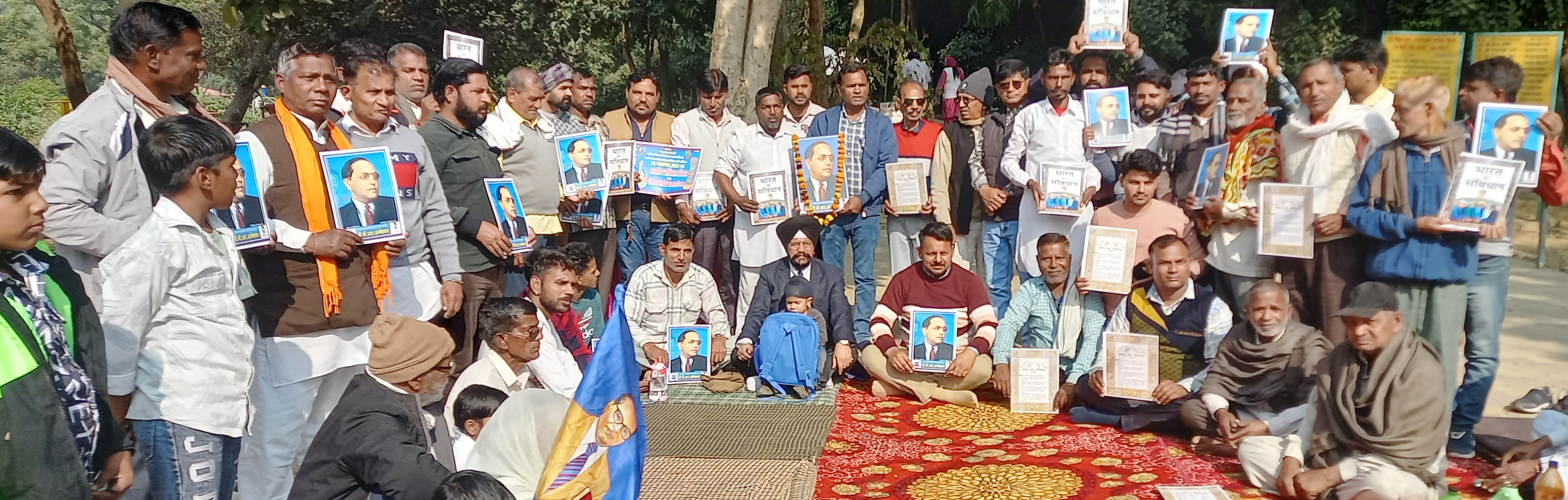 धनीराम ने कहा कि संविधान दिवस खंड स्तर पर मनाया गया और बाबा साहब के जीवन, संघर्ष व देशहित में योगदान पर चर्चा की गई। सरकार के प्रति भी समाज में आक्रोष पनप रहा है क्योंकि सरकार हमारे समाज को बांटने का काम कर रही है जिससे समाज को गहरी चोट पहुंची है। पहले दो अप्रैल को संगठन तैयार हुआ था, सरकार ने उसको तोड़ने की साजिश की है लेकिन हम ऐसा नहीं होने देंगे। हम संगठित हैं। समाज की लंबे समय से मांग है कि इस पार्क में डा. भीमराव अंबेडकर की प्रतिमा लगाई जाए।