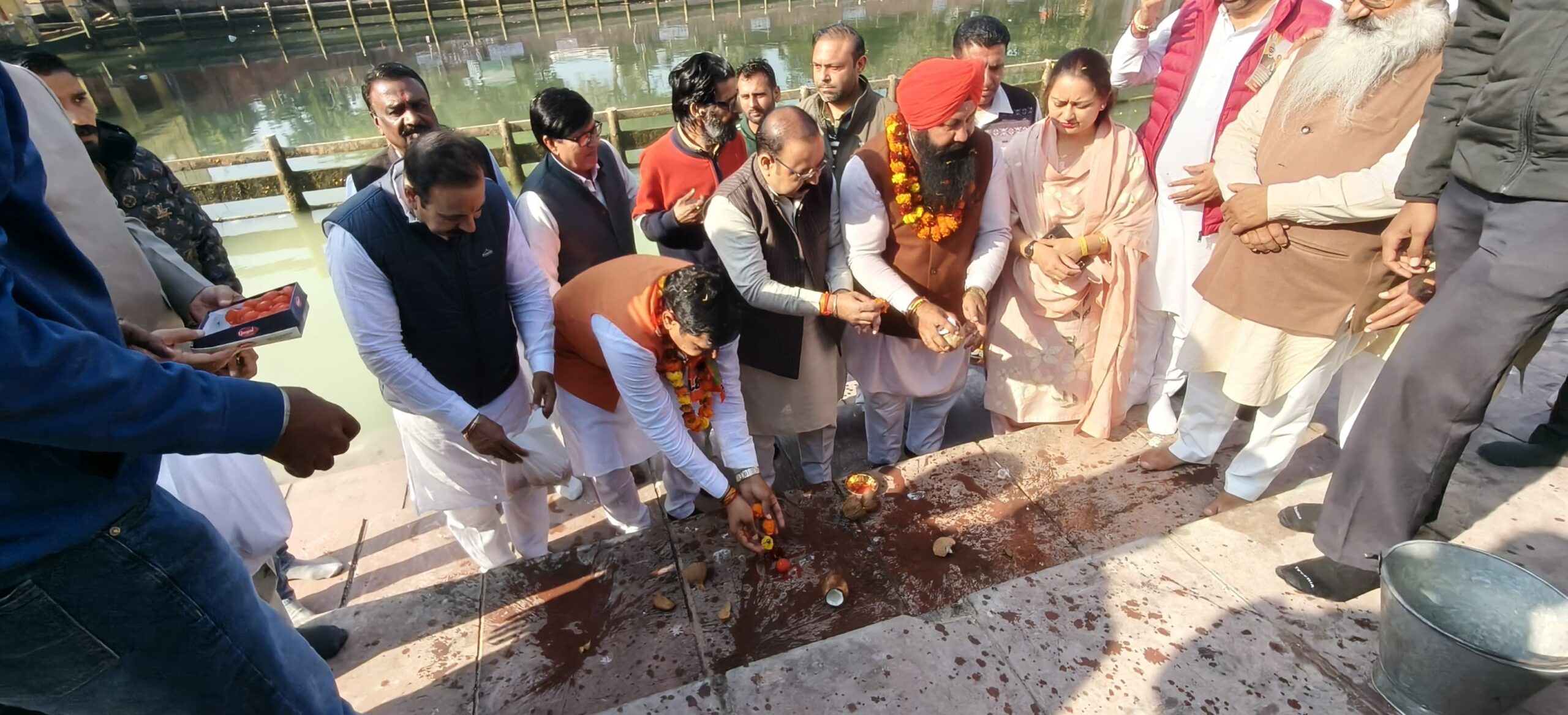भाजपा जिलाध्यक्ष तेजेंद्र सिंह गोल्डी ने सरस्वती तीर्थ पर आरती स्थल के उदघाटन की आमजन को बधाई देते हुए कहा कि पिहोवा सरस्वती तट पर आरती स्थल का निर्माण एक बेहद प्रशंनीय कार्य है। यहां पर लोगों को आरती के लिए एक स्थान मिलेगा, जहां पर मेलों व महोत्सवों के अतिरिक्त आमजन प्रत्येक दिन आरती कर सकेंगे। इस मौके पर नगरपालिका प्रधान आशीष चक्रपाणि ने कहा कि लम्बे समय से पिहोवा सरस्वती तट पर आरती स्थल बनाने के विषय को संज्ञान में लाया गया था। आज सरस्वती तट पर आरती स्थल के उदघाटन कार्यक्रम में शामिल होना बेहद भाग्यशाली है। कुरुक्षेत्र के ब्रहमसरोवर तट पर वीआईपी आरती स्थल की तरह पिहोवा में भी आरती स्थल का होना अपने आप में एक गौरव की बात है। इस मौके पर जिला परिषद चेयरमैन कंवलजीत कौर, सिंचाई विभाग सुप्रीडेंट इंजीनियर अरविंद कौशिक, सिंचाई विभाग एक्सिएन नवतेज सिंह सैनी, रामधारी शर्मा, हरविंद्र सिंह, राकेश पुरोहित, गोपाल शर्मा, भाजपा कार्यकर्ता सुखबीर सैनी सहित विभिन्न गणमान्य व्यक्ति मौजूद थे।
