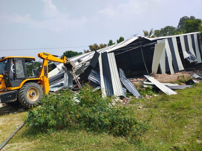करनाल विजय काम्बोज। जिला नगर योजनाकार गुंजन ने बताया कि गत दिवस को अर्बन एरिया करनाल में तीन अवैध कॉलोनियों के विरूद्ध तोड़फोड़ की कार्रवाई की गई। उन्होंने बताया कि पहली अवैध कॉलोनी जो लगभग 2 एकड़ में गांव मंगलपुर में स्थित है जिसमें पक्की सडकों व सीवरेज के विरूद्ध तोडफोड़ की कार्रवाई की गई। दूसरी अवैध कॉलोनी जो लगभग 1.25 एकड़ में गांव मंगलपुर में स्थित है जिसमें 1 नवनिर्मित गोदाम व सभी कच्ची सडकों के विरूद्ध तोडफोड़ की कार्रवाई की गई। उन्होंने बताया कि तीसरी अवैध कॉलोनी जो लगभग 2.5 एकड़ में गांव फूंसगढ स्थित है जिसमें 4 डीपीसी, एक निर्माणधीन मकान व पक्की सडकों के विरूद्ध तोडफोड़ की कार्रवाई की गई। कार्रवाई के दौरान जिला नगर योजनाकार व ड्यूटी मजिस्ट्रेट व थाना सैक्टर-32,33. जिला करनाल की पुलिस फोर्स मौके पर उपस्थित थी।