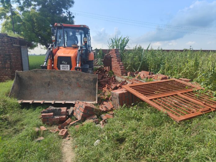 करनाल || जिला नगर योजनाकार गुंजन ने बताया कि मंगलवार को निसिंग में दो अवैध कॉलोनियों के विरूद्ध तोडफ़ोड़ की कार्रवाई की गई। उन्होंने बताया कि पहली अवैध कॉलोनी जो लगभग 10 एकड़ में गोंदर रोड पर गणेश राइस मिल में स्थित है जिसमें सीवर नैटवर्क, 30 डी.पी.सी. के विरूद्ध तोडफ़ोड़ की कार्रवाई की गई। दूसरी अवैध कॉलोनी जोलगभग 4.25 एकड़ में गांव गोन्दर में स्थित है जिसमें 2 चारदीवारी, 6 डी.पी.सी. के विरूद्ध तोडफ़ोड़ की कार्रवाई की गई। कार्यवाही के दौरान डयूटी मजिस्ट्रेट ब्लॉक एग्रीकल्चर ऑफिसर निसिंग व थाना निसिंग की पुलिस फोर्स मौके पर उपस्थित रही।
