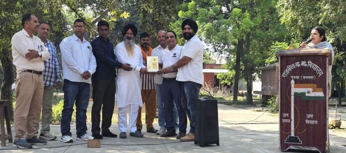 इन्द्री विजय काम्बोज  ।। राजकीय वरिष्ठ माध्यमिक विद्यालय रंबा में श्री गुरु तेग बहादुर जी का शहीद दिवस पूरी श्रद्धा और सम्मान के साथ मनाया गया। इस मौके पर आयोजित विशेष कार्यक्रम में मुख्य अतिथि के रूप में हरियाणा सिख गुरुद्वारा प्रबंधक कमेटी के यूथ विंग के पूर्व प्रधान गुरदीप सिंह रंबा ने शिरकत की। कार्यक्रम की शुरुआत विद्यालय के पंजाबी अध्यापक उमीत सिंह सहित विद्यार्थियों के बीच श्री गुरु तेग बहादुर जी से संबंधित संवाद सत्र से हुई। इस अवसर पर छात्रों ने गुरु तेग बहादुर जी के जीवन पर आधारित कविताएं, भाषण और भजन प्रस्तुत किए जिसने सभी को भावुक कर दिया। मुख्यातिथि गुरदीप सिंह रंबा ने अपने संबोधन में कहा कि गुरु तेग बहादुर जी ने धर्म और मानवता की रक्षा के लिए अपना सर्वोच्च बलिदान दिया। उन्होंने हमें सिखाया कि अन्याय और अत्याचार के खिलाफ हमेशा आवाज उठानी चाहिए और सत्य के मार्ग पर चलना चाहिए। उन्होंने छात्रों से गुरु जी के दिखाए रास्ते पर चलने और समाज में भाईचारा और सद्भाव बनाए रखने का आह्वान किया। कार्यक्रम के अंत में विद्यालय के प्रधानाचार्य मनोज कुमार ने कार्यक्रम में प्रस्तुति देने वाले छात्रों को प्रोत्साहित किया और उन्हें भविष्य के लिए शुभकामनाएं दी। उन्होंने कहा कि यह कार्यक्रम विद्यालय के इतिहास में एक महत्वपूर्ण और प्रेरणादायक आयोजन के रूप में याद किया जाएगा। उन्होंने मुख्य अतिथि और सभी उपस्थित लोगों का आभार व्यक्त किया और कहा कि ऐसे कार्यक्रमों का उद्देश्य छात्रों को हमारे महान शहीदों के बलिदान और आदर्शों से परिचित कराना है। इस कार्यक्रम में विद्यालय शिक्षक, अभिभावक व एस एम सी सदस्य भी शामिल रहे।