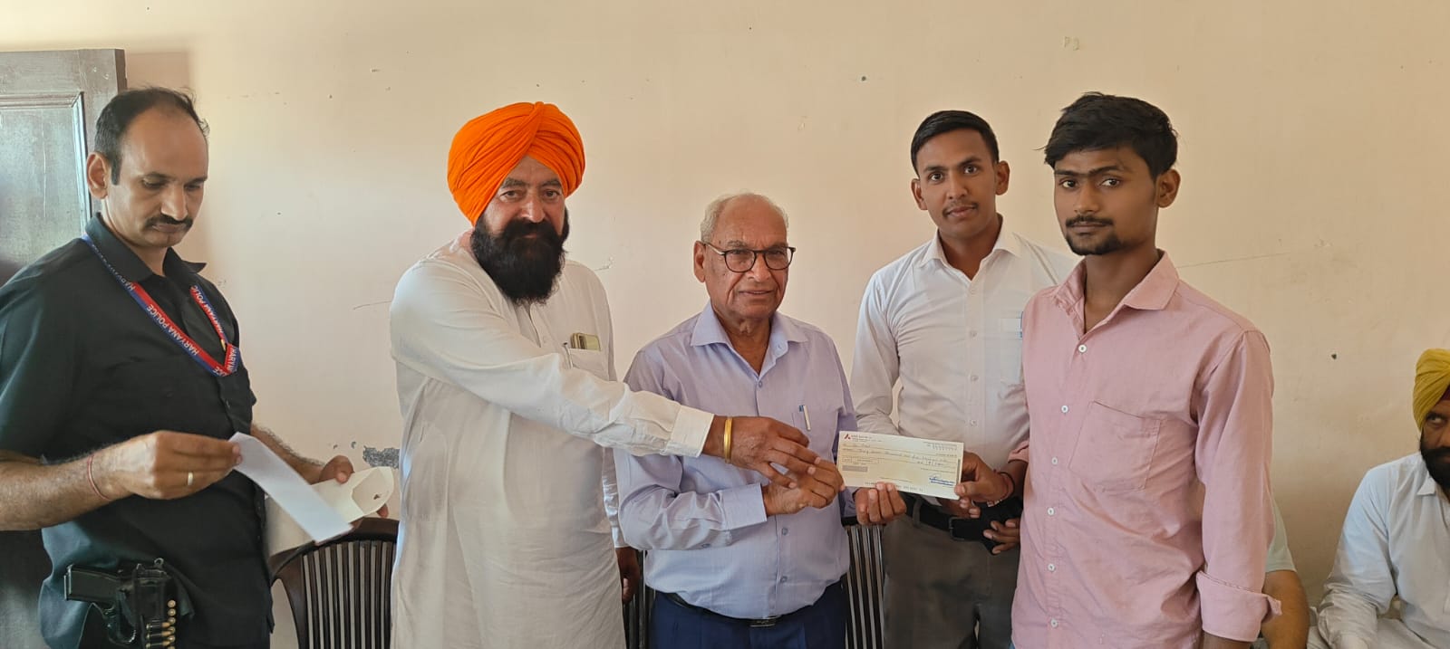 इंद्री विजय  काम्बोज ।   विधायक एवं गवर्मेंट चीफ व्हिप रामकुमार कश्यप ने शुक्रवार को मुख्यमंत्री किसान एवं खेतीहर मजदूर जीवन सुरक्षा योजना के तहत लाभार्थियों को वित्तीय सहायता के चेक वितरित किये। इस दौरान उन्होंने गांव टिकरी निवासी बिरहमपाल को 37500 रुपये और गांव उचानी निवासी रोहित को 37500 रुपये  की वित्तीय सहायता राशि के चेक वितरित किए।