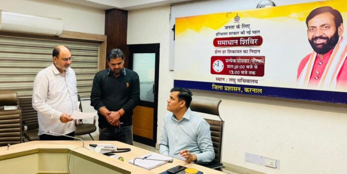 करनाल |। एसडीएम प्रदीप कुमार की अध्यक्षता में वीरवार को लघु सचिवालय के सभागार में समाधान शिविर का आयोजन किया गया। समाधान शिविर में एसडीएम ने आमजन की समस्याएं सुनीं और संबंधित अधिकारियों को उनके समाधान के लिए आवश्यक दिशा-निर्देश दिए। करनाल मुख्यालय पर आयोजित समाधान शिविर में दो, उपमंडल नीलोखेड़ी में दो , घरौंडा में एक व असंध में दो शिकायत प्राप्त हुई। वहीं उपमंडल इंद्री में आयोजित समाधान शिविर में कोई शिकायत प्राप्त नहीं हुई।