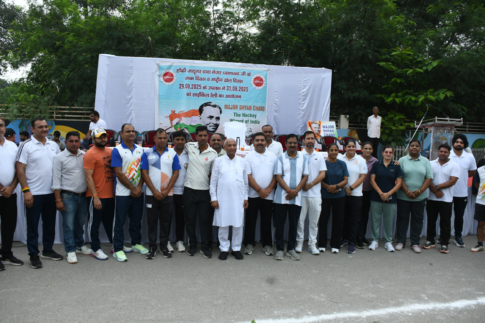 करनाल विजय काम्बोज|| हॉकी के जादूगर मेजर ध्यानचंद की जयंती और राष्ट्रीय खेल दिवस के उपलक्ष में रविवार को करनाल के एनडीआरआई चौक पर साइक्लोथॉन रैली निकाली गई। इस मौके पर इंद्री के विधायक एवं चीफ व्हीप रामकुमार कश्यप बतौर मुख्य अतिथि पहुंचे। उन्होंने हरी झंडी दिखाकर इस रैली को रवाना किया।