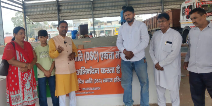 तेजी ने कहा कि पूर्व मुख्यमंत्री एवं वर्तमान में केंद्रीय मंत्री मनोहरलाल ने शिक्षा में आरक्षण देकर इस वंचित समाज को मुख्यधारा से जोडऩे का काम किया था। मंच के राष्ट्रीय प्रवक्ता कर्मबीर लाठर ने केंद्रीय मंत्री मनोहरलाल व सी.एम नायब सिंह सैनी का आभार जताया। इस मौके पर पूर्व कस्टम अधिकारी रामकंवर वाल्मीकि, मदन सिंह सौढी, राममूर्ति सिरसवाल, मुकेश रानी, इन्द्री भाजपा मंडल महामंत्री बालक राम, सूरज कुमार, शक्ति सिंह, धनंजय सिंह, अमर सिंह फौजी, शिवम, सुरज तुसंग, प्रदीप वाल्मीकि, विक्रांत शर्मा सहित अन्य लोग भी उपस्थित रहे।फोटो कैप्शन : इंद्री की अनाज मंडी में खुशी जाहिर करते डी.एस.सी. (वंचित अनुसूचित जाति) एकता मंच के पदाधिकारी एवं समाज के लोग।