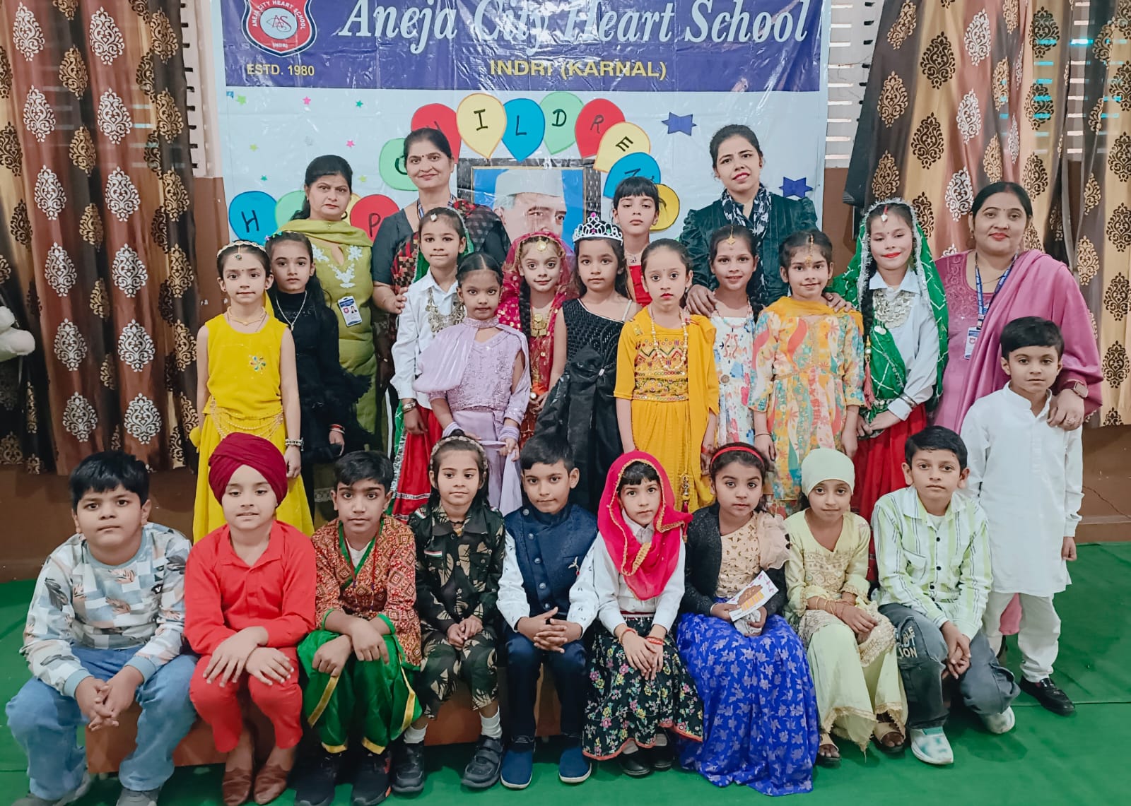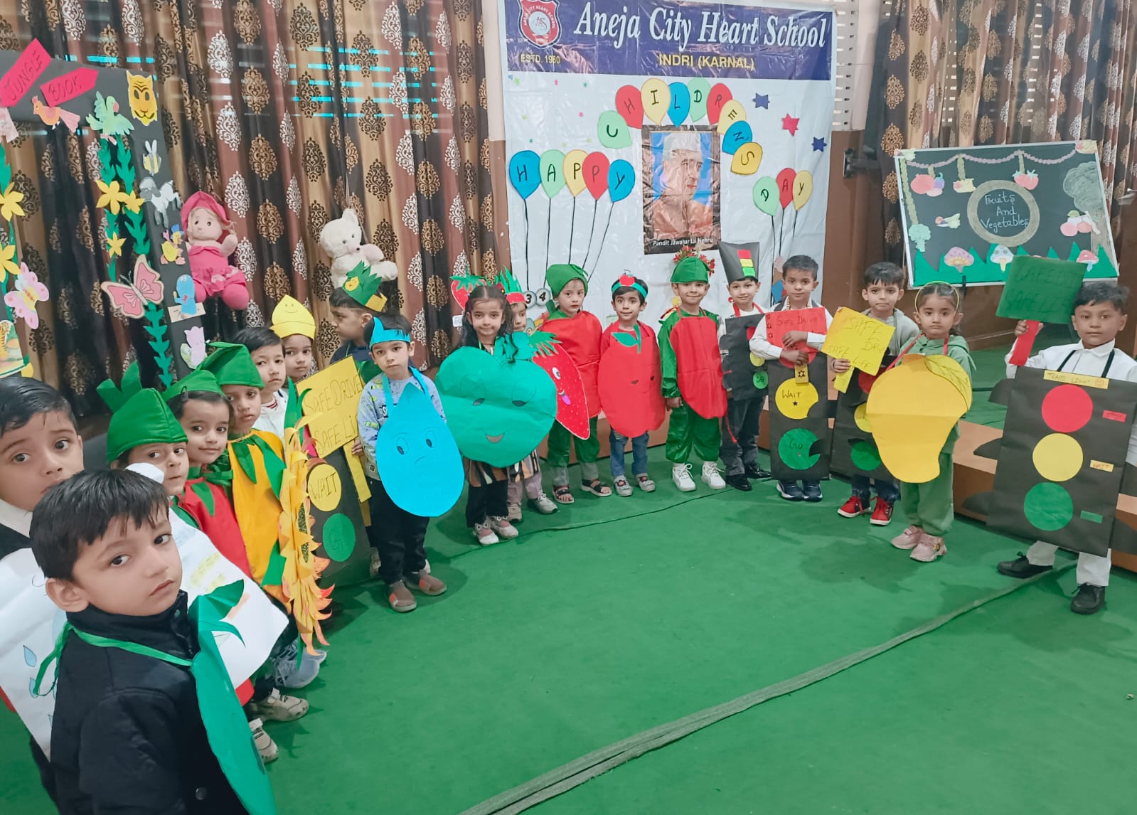 अनेजा सिटी हार्ट स्कूल में बाल दिवस बड़ी धूमधाम से मनाया गया। इस मौके पर हुए सांस्कृतिक कार्यक्रम में नर्सरी से यूकेजी तक के बच्चे फैंसी ड्रैस में अलग-अलग थीम जैसे ट्रैफिक चिन्ह, पानी बचाओं, डॉक्टर, अध्यापक, प्रिंसिपल,आर्मी, पुलिस इत्यादि में तैयार हो कर आए। पहली और दूसरी कक्षा के विद्यार्थियों ने नृत्य प्रतियोगिता में भाग लिया। सभी ने अपनी कला का प्रदर्शन किया जिसे सभी ने खूब सराहा। नर्सरी कक्षा के बच्चे वीआईपी कालोनी में बने सुंदर पार्क में भी गए। तीसरी से दसवीं कक्षा के बच्चों का सभी अध्यापकों ने तिलक किया और उन्हें चॉकलेट दी। स्कूल के एमडी विजय अनेजा और एमडी मैडम सुनीता अनेजा ने सभी बच्चों को बाल दिवस की बधाई दी।
