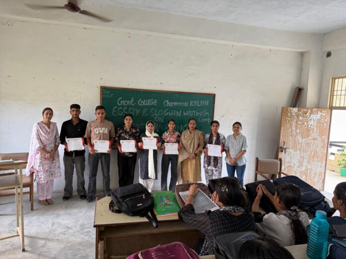 इस्माईलाबाद, 14अगस्त(यज्ञदत्त शास्त्री): राजकीय महाविद्यालय चम्मू कलां में महत्वपूर्ण दिवस महोत्सव समिति, एनएसएस इकाई तथा यूथ एंड रेड क्रॉस कमेटी के संयुक्त तत्वावधान में तिरंगा यात्रा का आयोजन किया गया। राष्ट्रक्ति से ओत-प्रोत तिरंगा यात्रा को महाविद्यालय की प्राचार्या डॉ. सविता कुमारी ने हरी झंडी दिखाकर रवाना किया। विद्यार्थियों ने देशभक्ति के नारों के साथ तिरंगा यात्रा में उत्साहपूर्वक हिस्सा लिया। कार्यक्रम की श्रृंखला में पंजाबी विभाग द्वारा महाविद्यालय प्रांगण में पौधारोपण का आयोजन किया गया। इस अवसर पर प्राचार्य सविता कुमारी ने विभागाध्यक्ष डॉ. किरण गर्ग एवं विद्यार्थियों की सराहना करते हुए पर्यावरण संरक्षण के प्रति उनके प्रयासों की प्रशंसा की। राजनीति विज्ञान विभाग द्वारा स्वतंत्रता दिवस के उपलक्ष्य में पोस्टर मेकिंग प्रतियोगिता आयोजित की गई। जिसमें बीए प्रथम वर्ष की नीलम, अंजली व जगदीप देवी ने क्रमश: प्रथम, द्वितीय एवं तृतीय स्थान प्राप्त किया। इसी क्रम में एंटी रैगिंग कमेटी के अंतर्गत एंटी रैगिंग सप्ताह के द्वितीय दिवस पर दो प्रतियोगिताएं निबंध लेखन एवं नारा लेखन प्रतियोगिता का आयोजन किया गया। निबंध लेखन प्रतियोगिता में प्रथम स्थान पर पलक दीप कौर बी.कॉम द्वितीय, साक्षी बी.ए तृतीय ने दूसरा और दिलावर सैनी बीए प्रथम ने तीसरा स्थान प्राप्त किया। नारा लेखन प्रतियोगिता में अवनीत कौर बीए द्वितीय वर्ष ने प्रथम, विक्रांत सिंह बी.ए तृतीय वर्ष ने दूसरा, खुशी बीए द्वितीय वर्ष ने तीसरा स्थान प्राप्त किया। विजेता विद्यार्थियों को प्रशस्ति पत्र देकर सम्मानित किया गया। इस अवसर पर महाविद्यालय के प्राध्यापक गण प्रो कुलदीप कुमार, प्रो. अनिल कुमार, डॉ. किरण गर्ग, प्रो.ललिता, प्रो. रजत कुमार एवं प्रो. ममतेश भी उपस्थित रहे।
